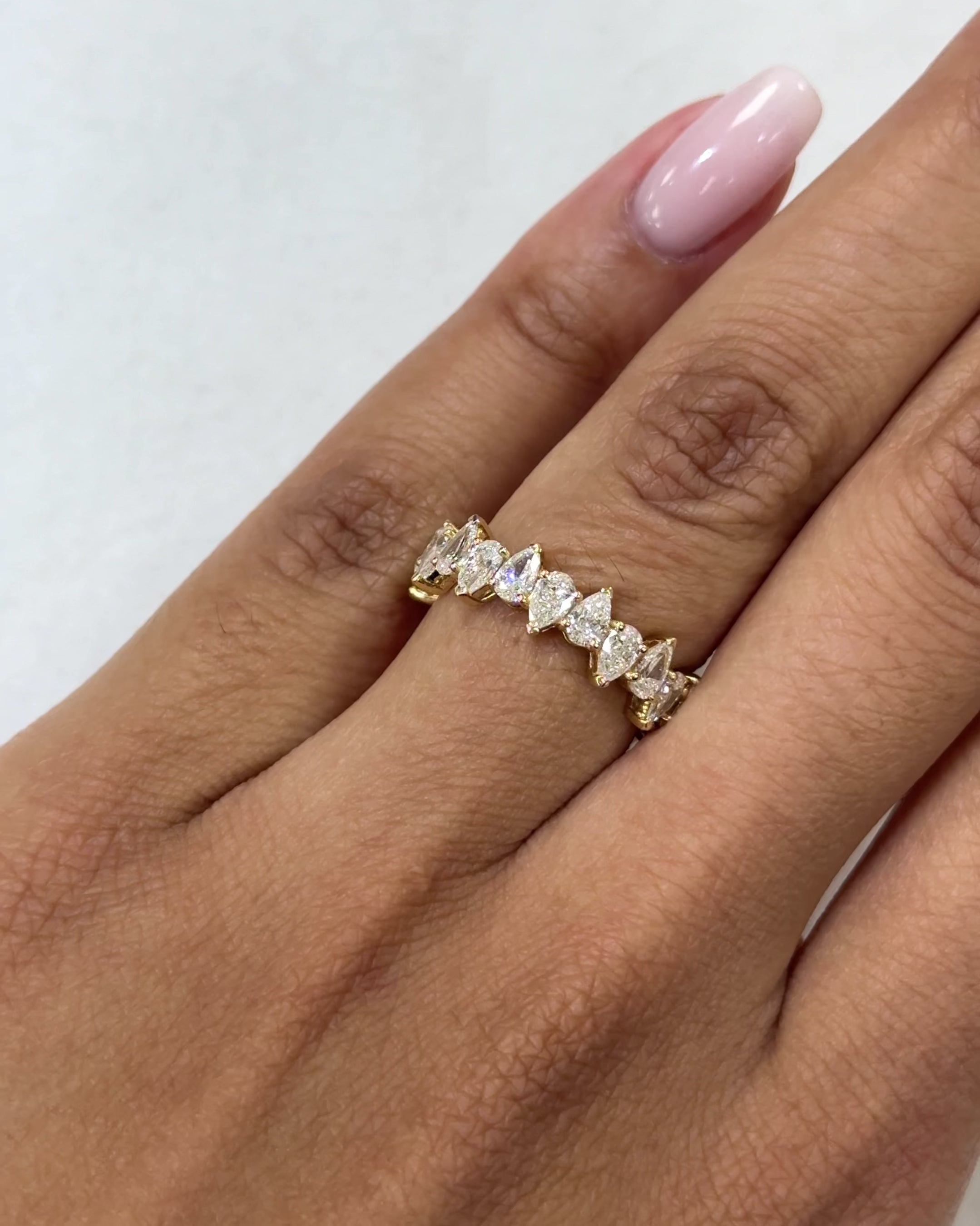Shine like a diamond with our 14K Pear Lab Diamond Eternity Ring. This stunning ring features a continuous band of pear-shaped lab diamonds, making it an eternal symbol of love and style.