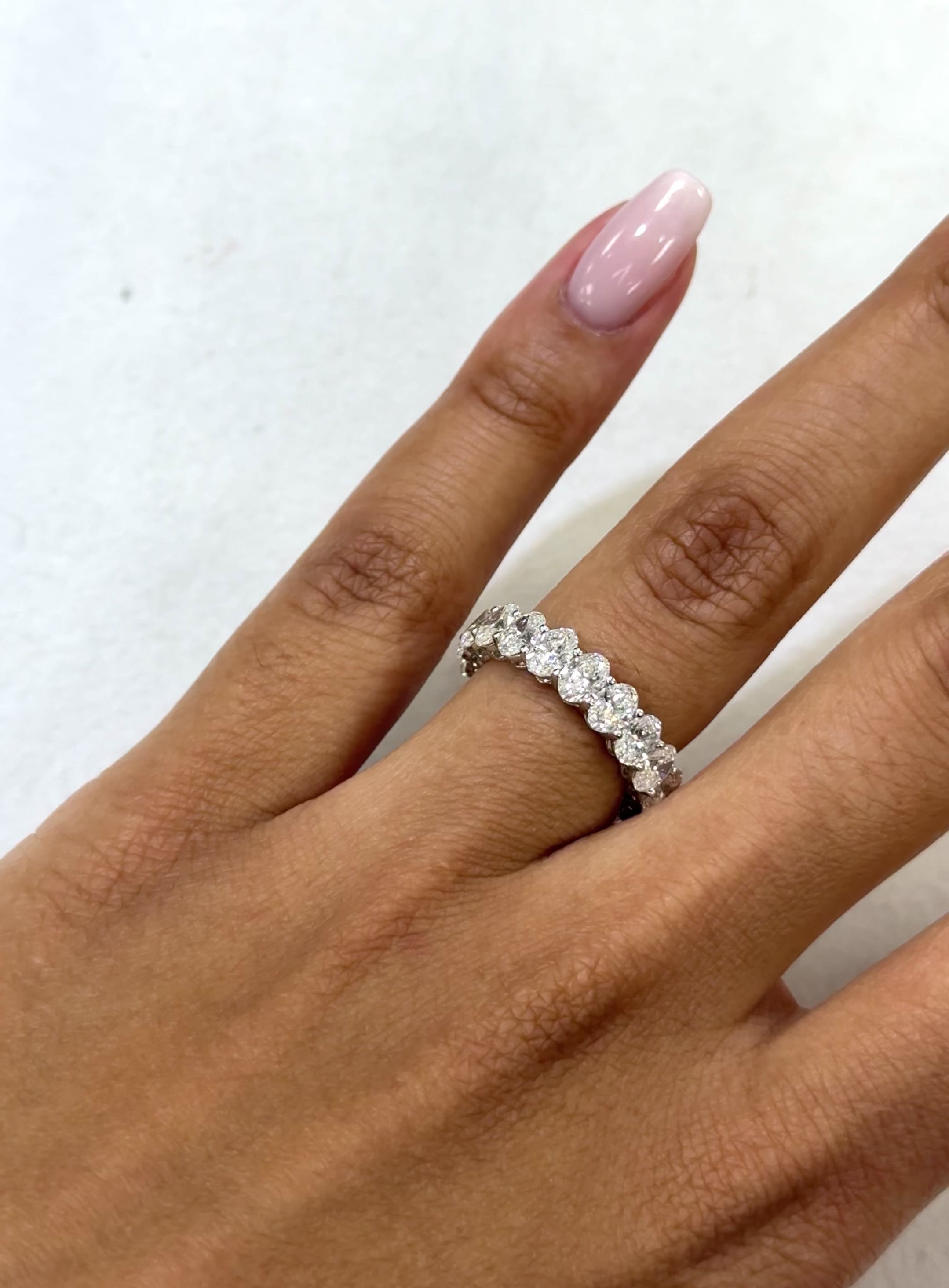 Introducing the forever-sparkling 14K Oval Lab Diamond Eternity Band! This stunning band is crafted with high-quality 14K gold and features oval-cut lab diamonds set all around for a timeless and elegant look.